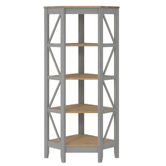 Wood Corner Bookcase 4 Shelf Corona | Furniture Dash Wood Corner Bookcase 4 Shelf Corona Gray | Furniture Dash