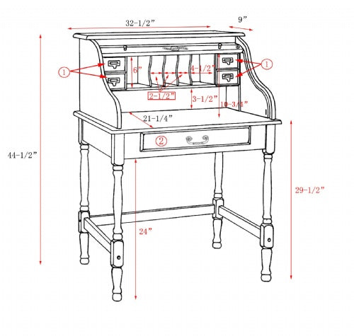 32" Mini Roll Top Desk w/ USB Power Outlet H 32" Mini Roll Top Desk w/ USB Power Outlet BW