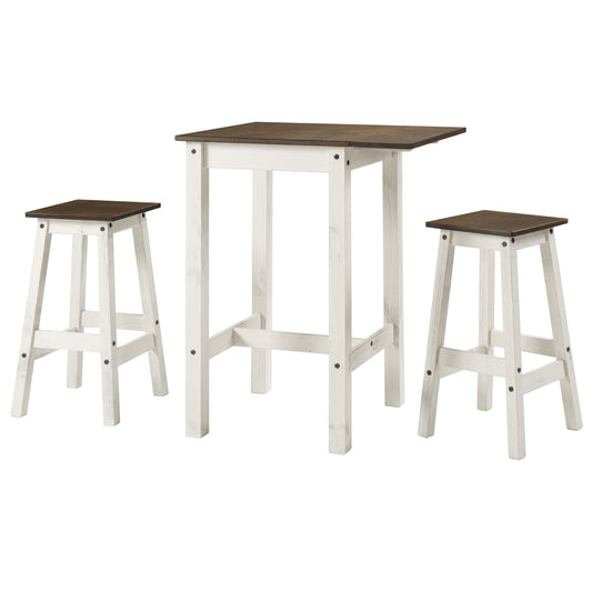 Wood Bar Height Dining Set of Drop Leaf Table and 2 Stools White Distressed | Furniture Dash