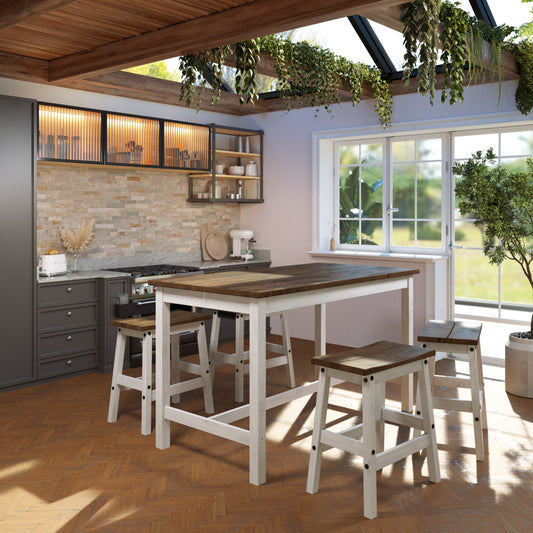 Regular price $479.00Regular priceUnit price perSale price $479.00Wood Dining Set Table and 4 Stools Harvest White Distressed | Furniture Dash