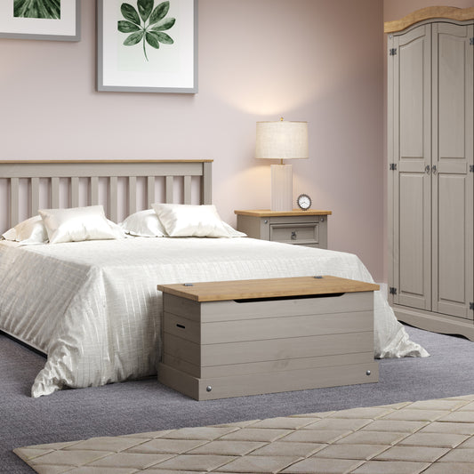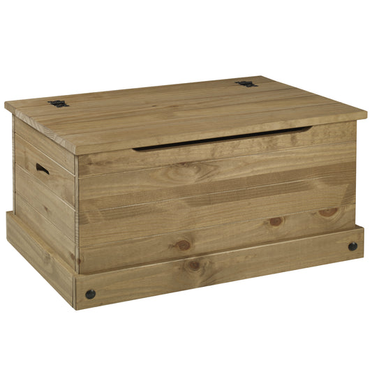The Wood Storage Trunk in black color is a versatile and durable storage solution made from solid pine wood sourced from renewable resources. This storage trunk is ideal for organizing and storing a variety of items, including bedding, clothes, books, toys, and other household essentials. The solid construction of the trunk makes it sturdy and reliable, ensuring that your belongings remain safe and secure.