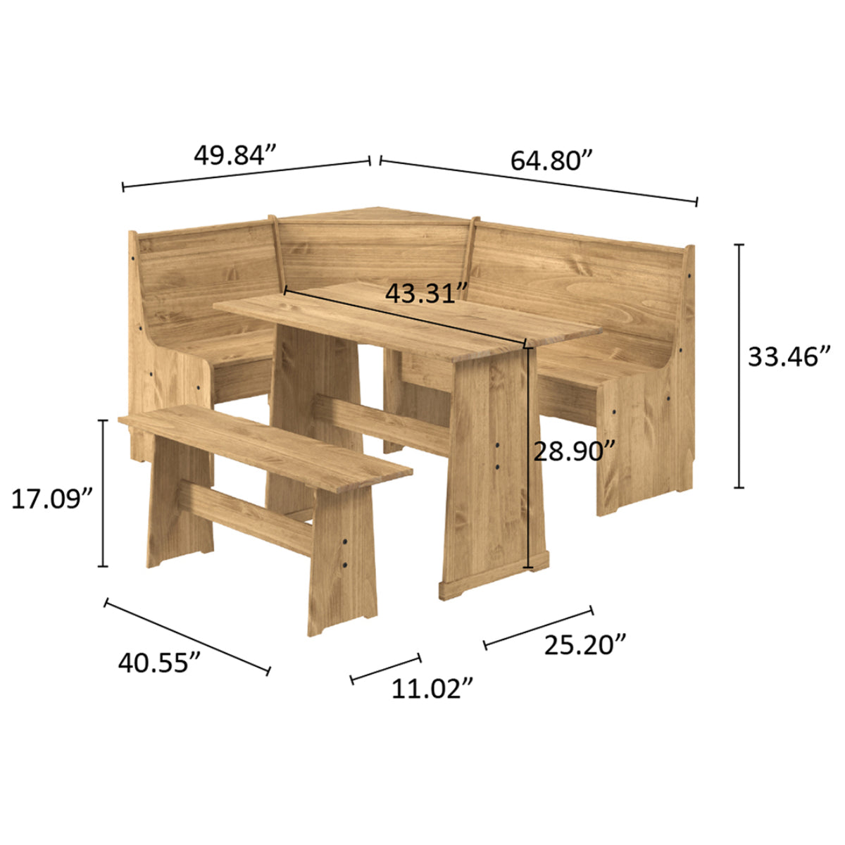 - Bench dimensions (single side): 49.84"W x 19.92"D x 33.46"H.
