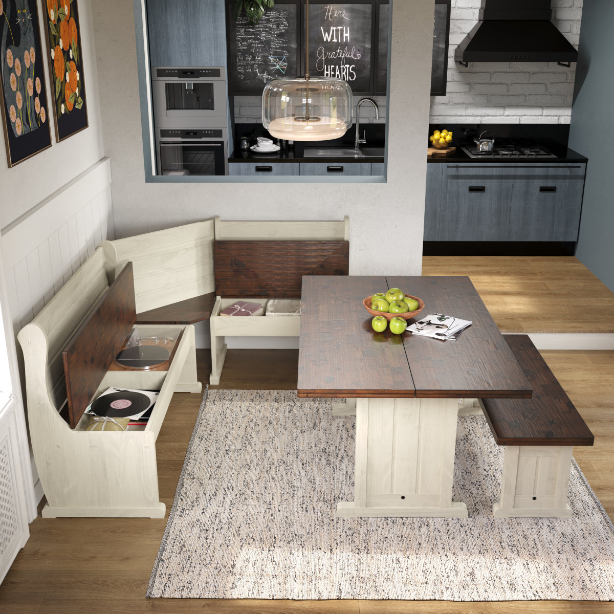 Corner Dining Set Harvest White Distressed | Furniture Dash