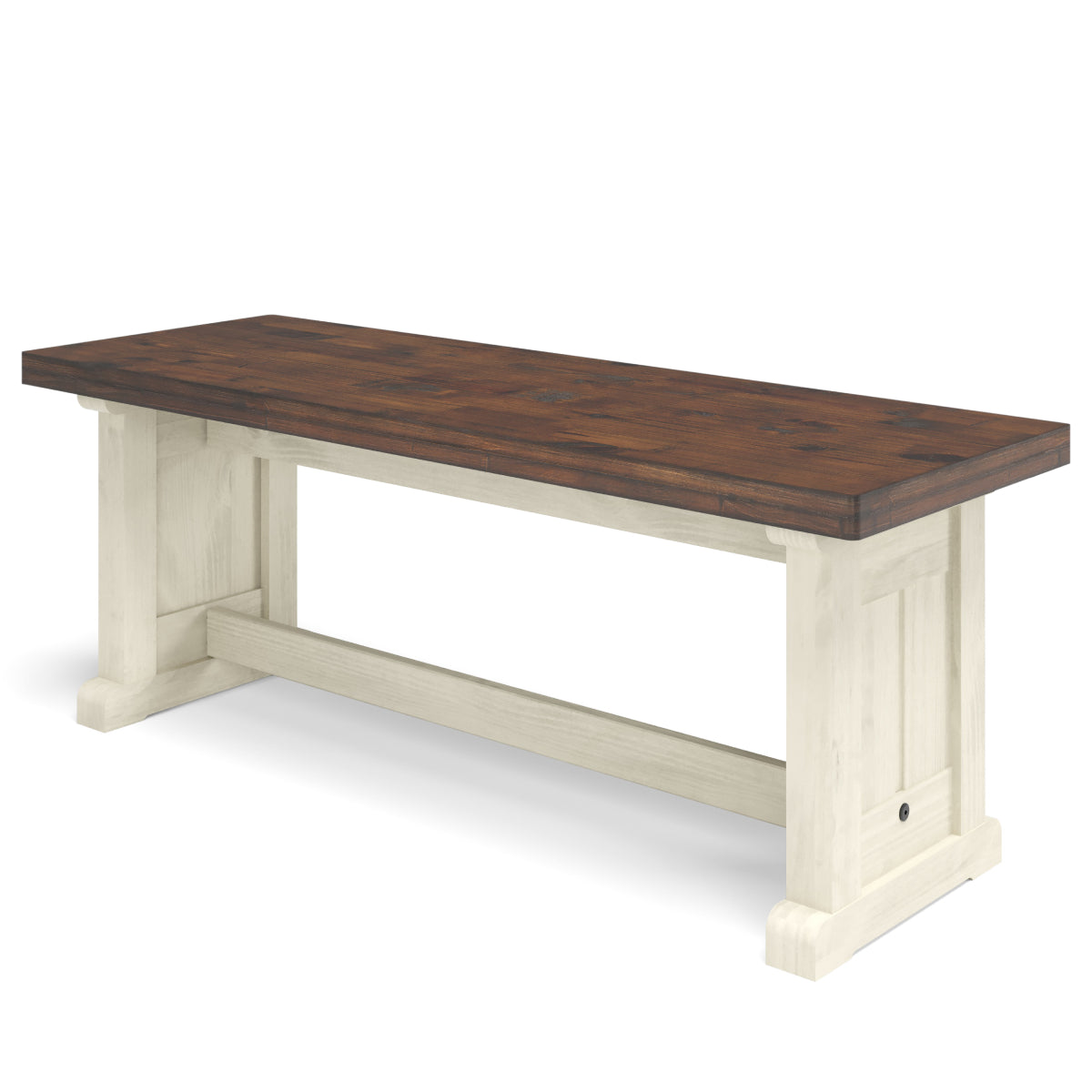 - Wood seats and top feature an intentionally distressed, worn look with natural imperfections, designed for a rustic style.