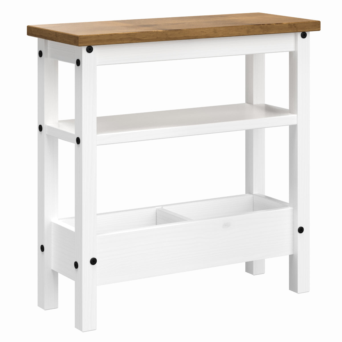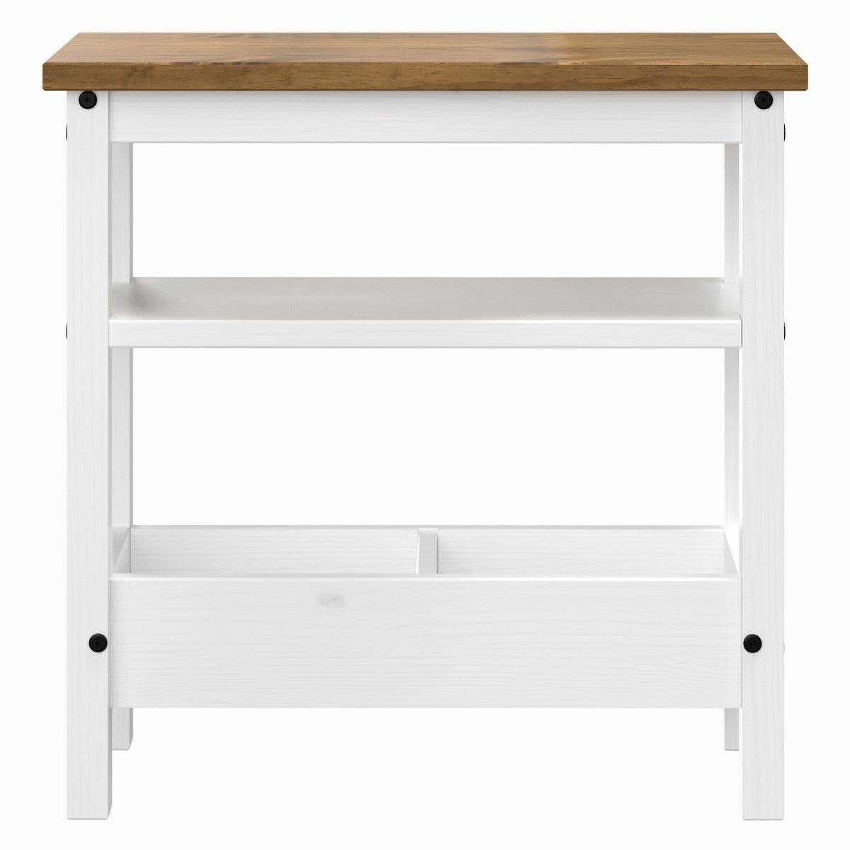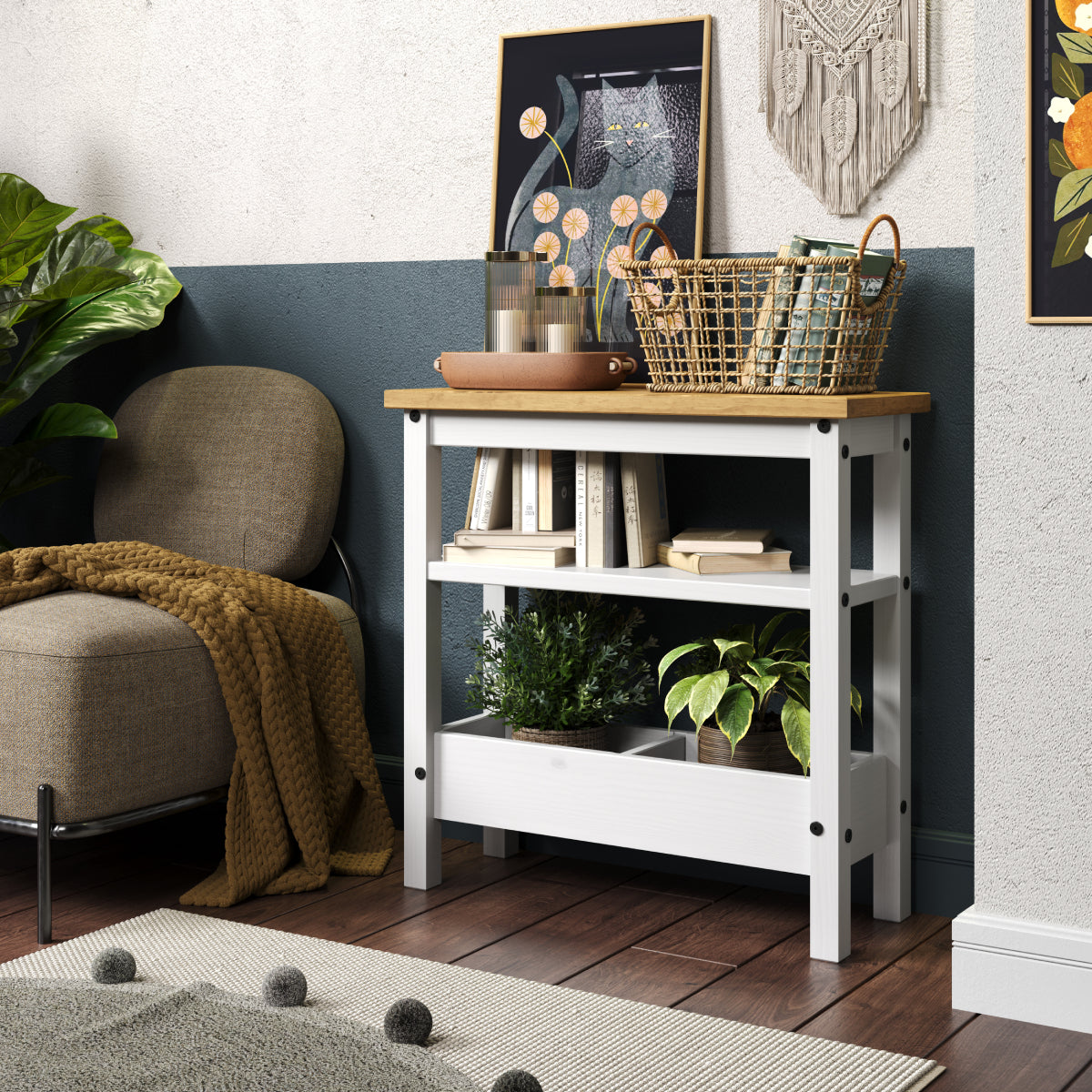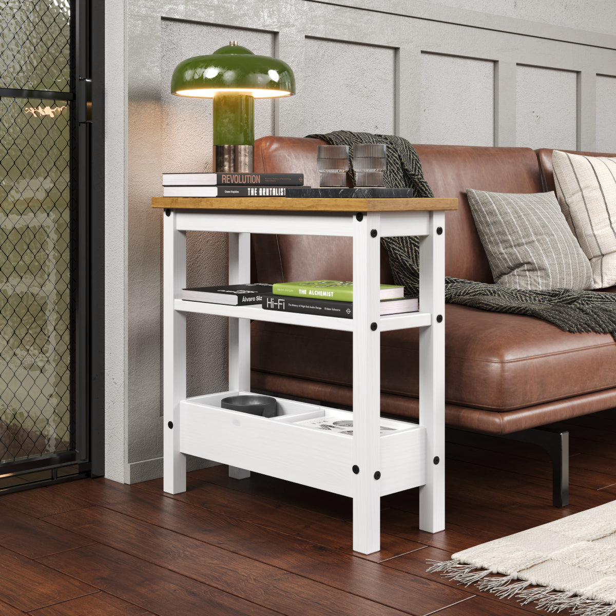 The simple and elegant design of this side table in white wash color makes it easy to incorporate into any decor style. Crafted from high-quality pine wood, this table is sturdy and durable, making it a reliable choice for everyday use.