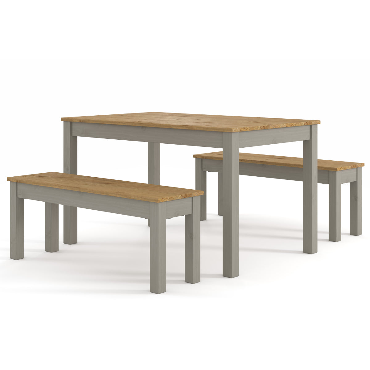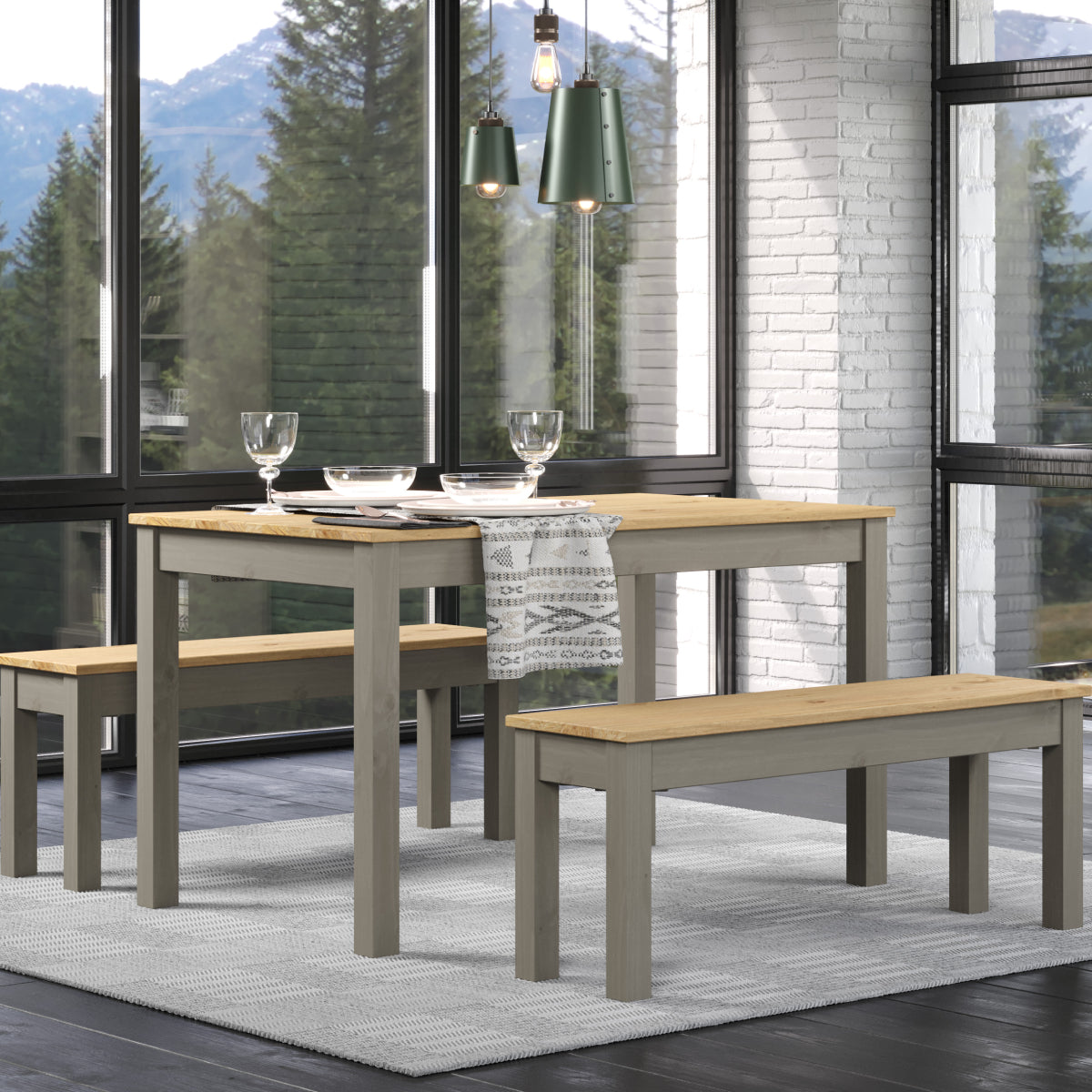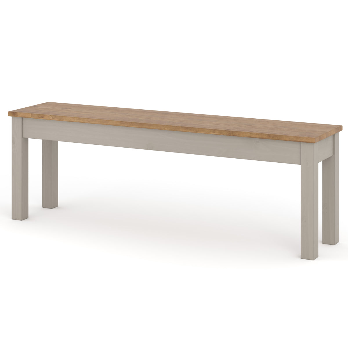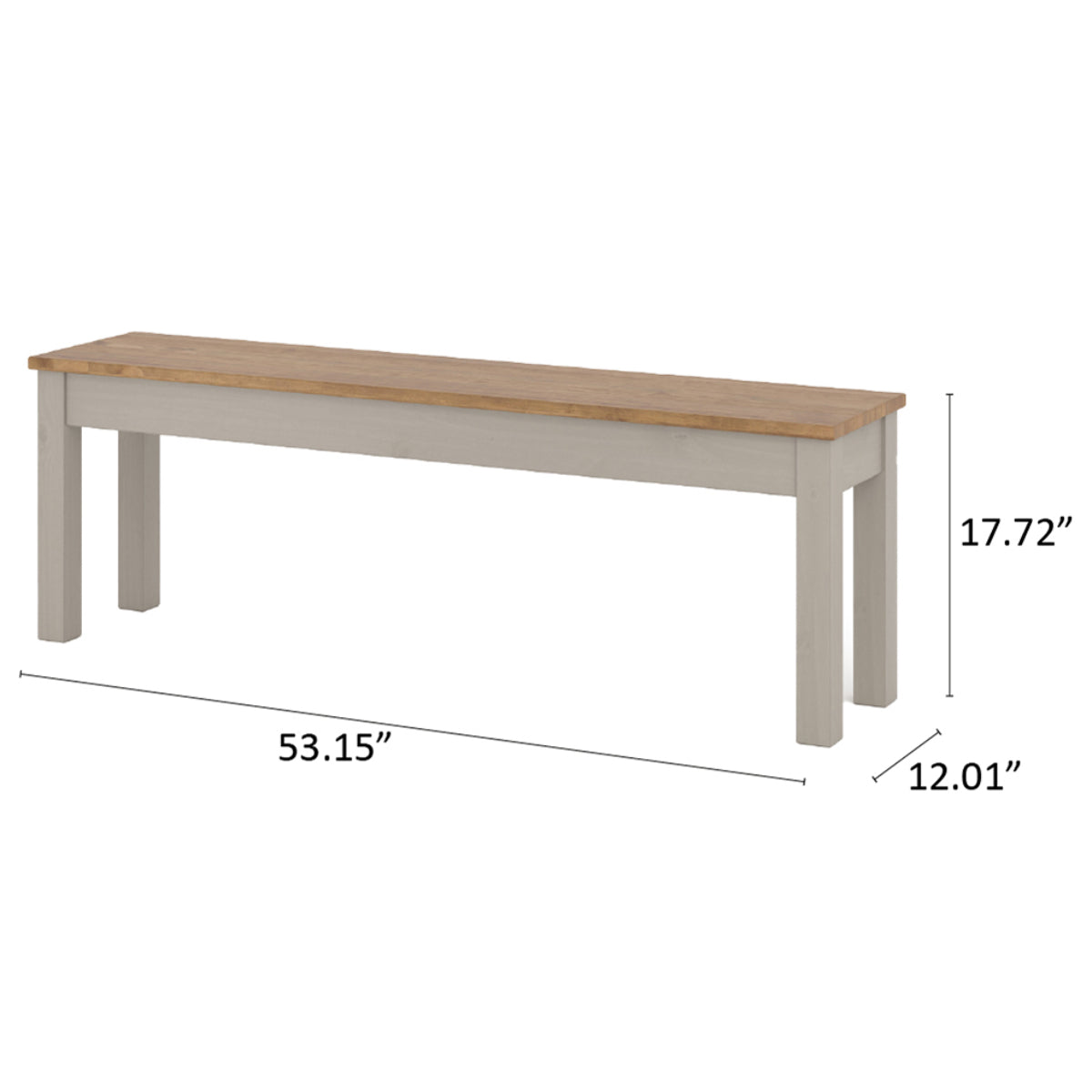 This bench is a beautiful and versatile piece of furniture that can add charm and character to any space. Crafted from high-quality pine wood, it features a gray wash finish and a seat in antique brown color stain that gives it a rustic, shabby-chic look.