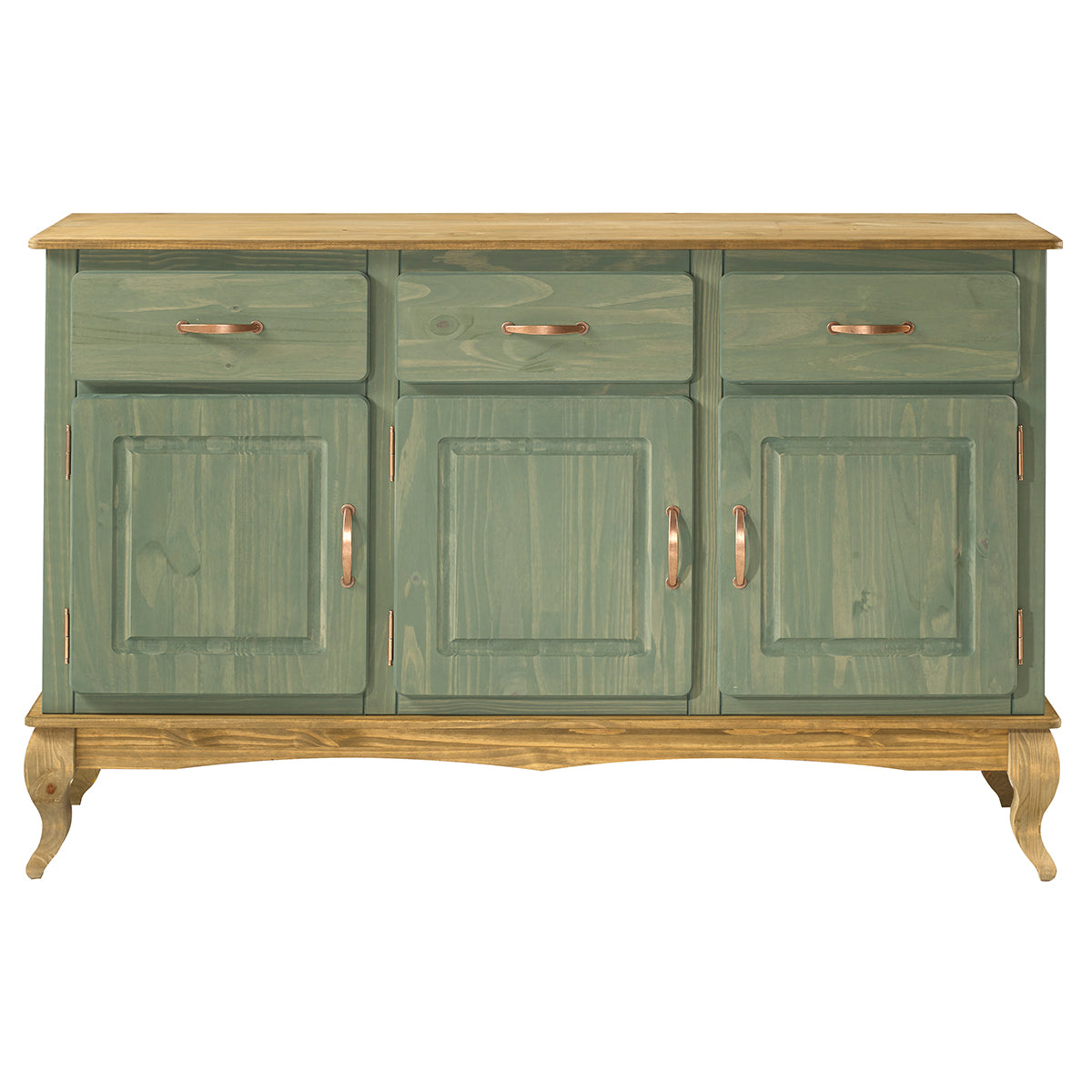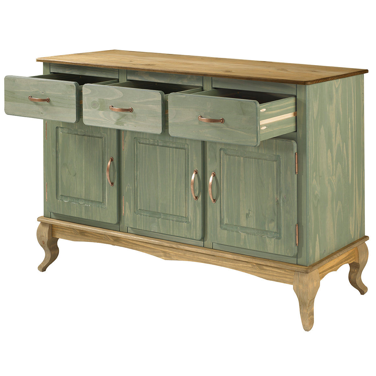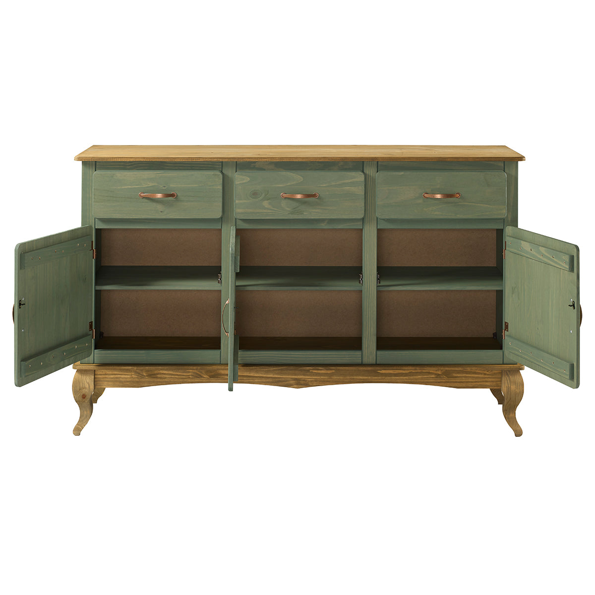 Add a touch of elegance to your home decor with this stunning 3 door 3 drawer wooden sideboard in green color. Crafted from high-quality wood, this sideboard is built to last and features three spacious drawers and three doors for ample storage space. The green finish makes it a perfect addition to any home. Use it to store your dinnerware, linens, or any other household essentials.