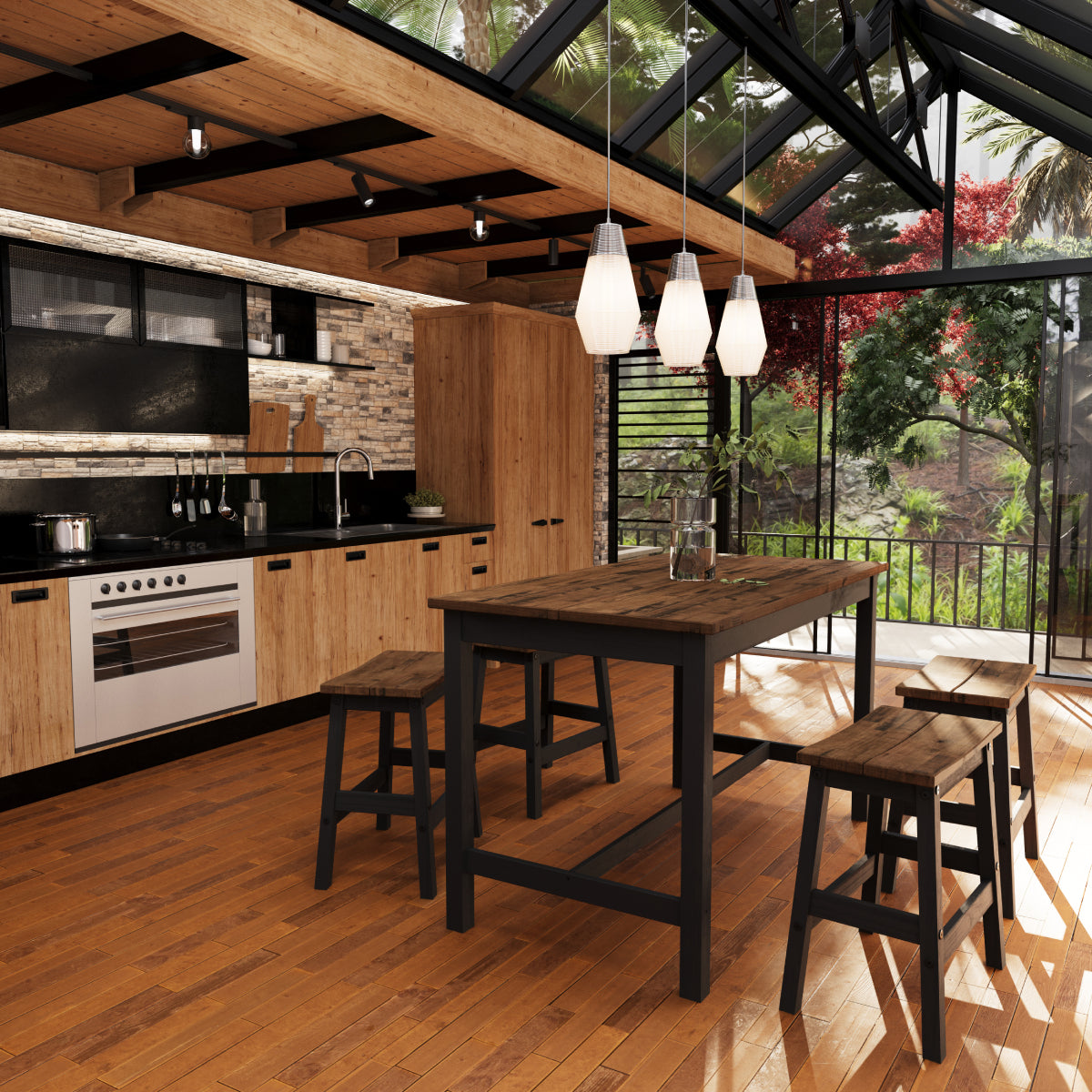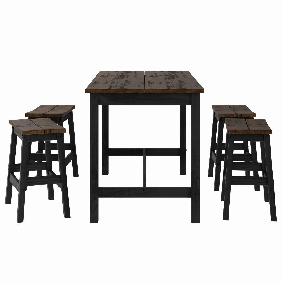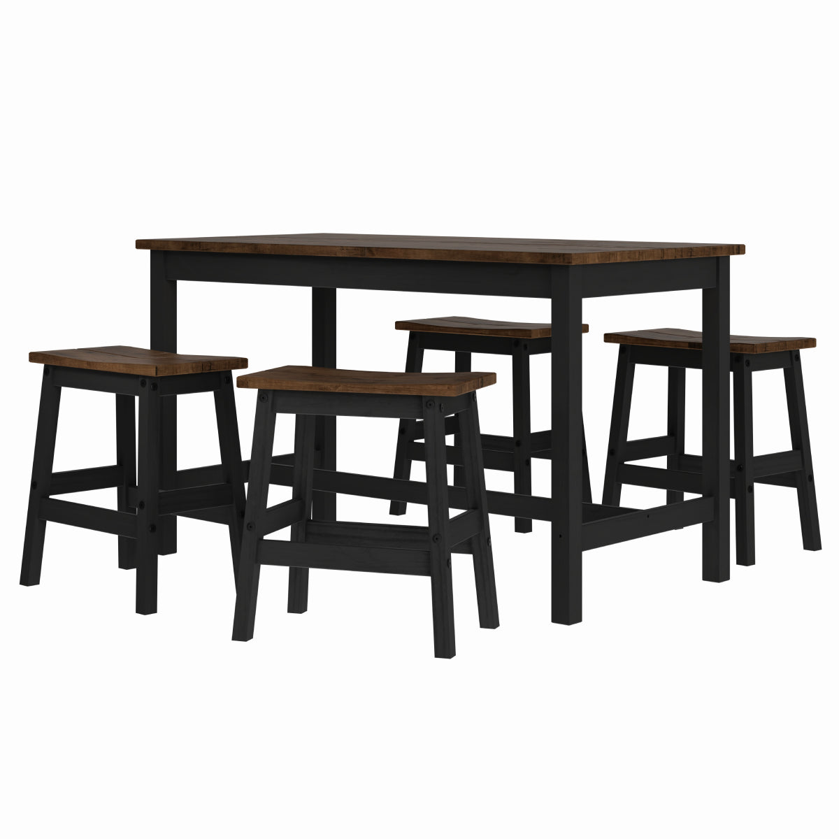 Wood Dining Set Table and 4 Stools Harvest Black | Furniture Dash