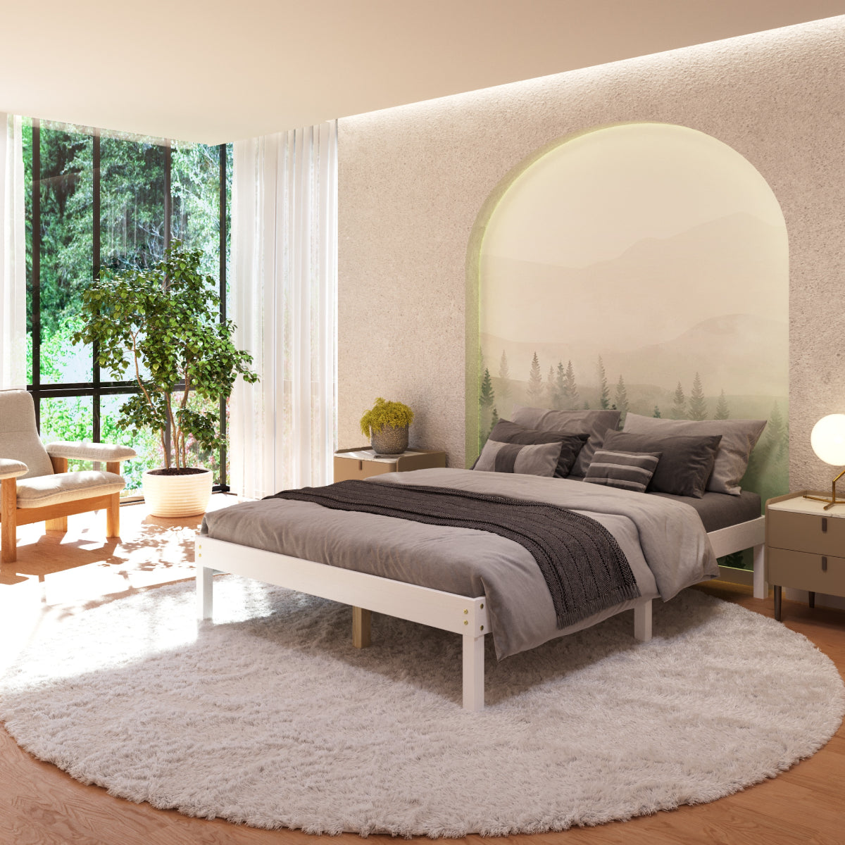 Wood Frame Queen Size Bed Corona Snow | Furniture Dash