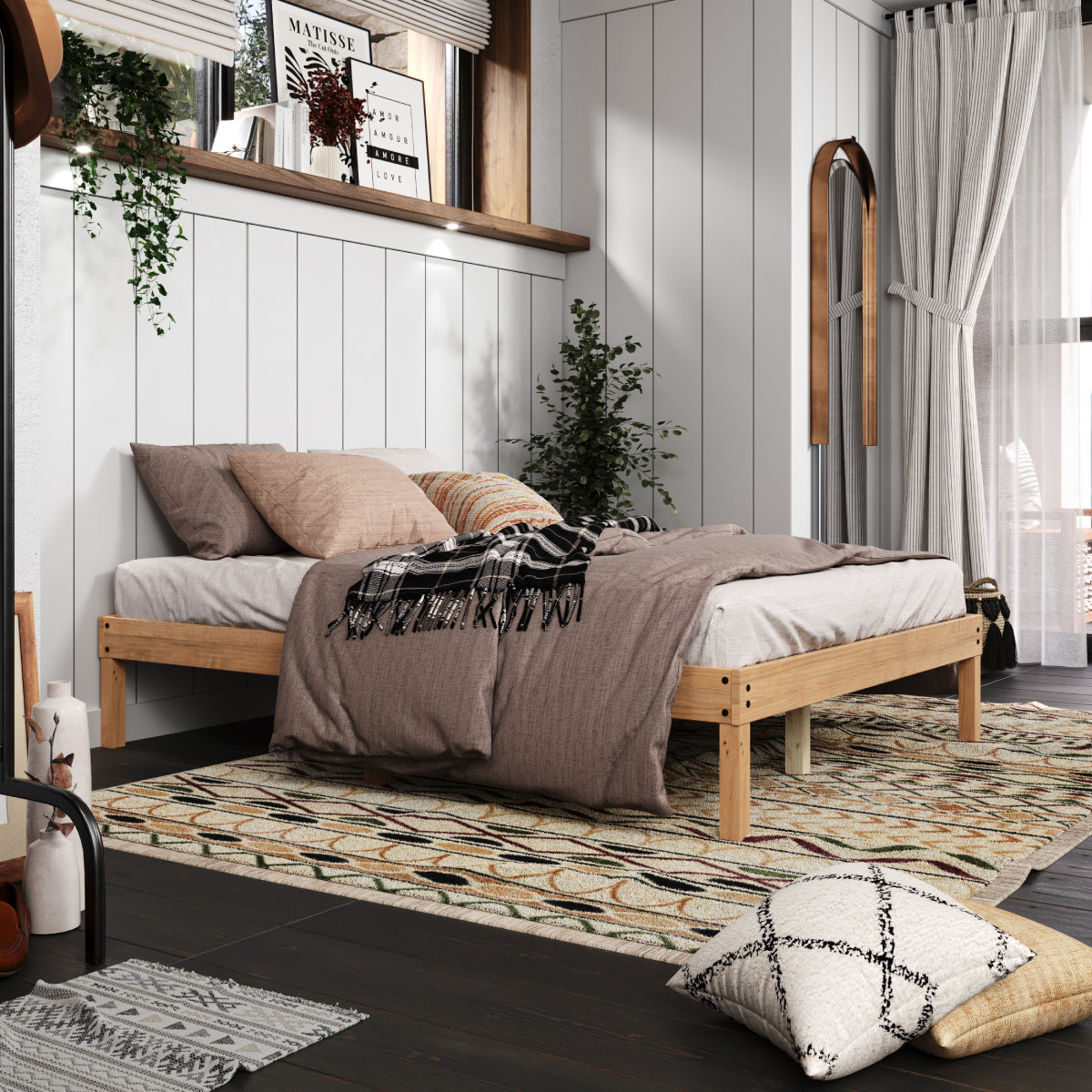 With a vintage rustic look, this bed is made out of sustainable and durable pine wood. Striking a clean-lined silhouette, it offers reliable support for your mattress and it's a great choice for your nest.