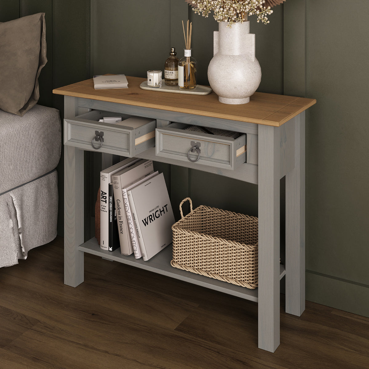 Wood Hall Table Console 2 Drawers Corona Gray | Furniture Dash