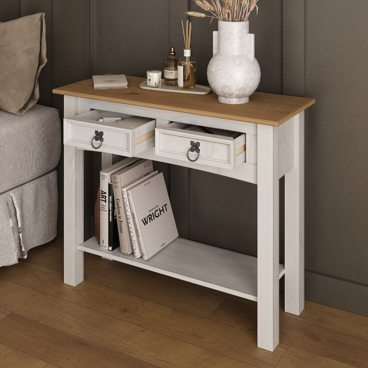 Wood Hall Table Console 2 Drawers Corona Snow | Furniture Dash