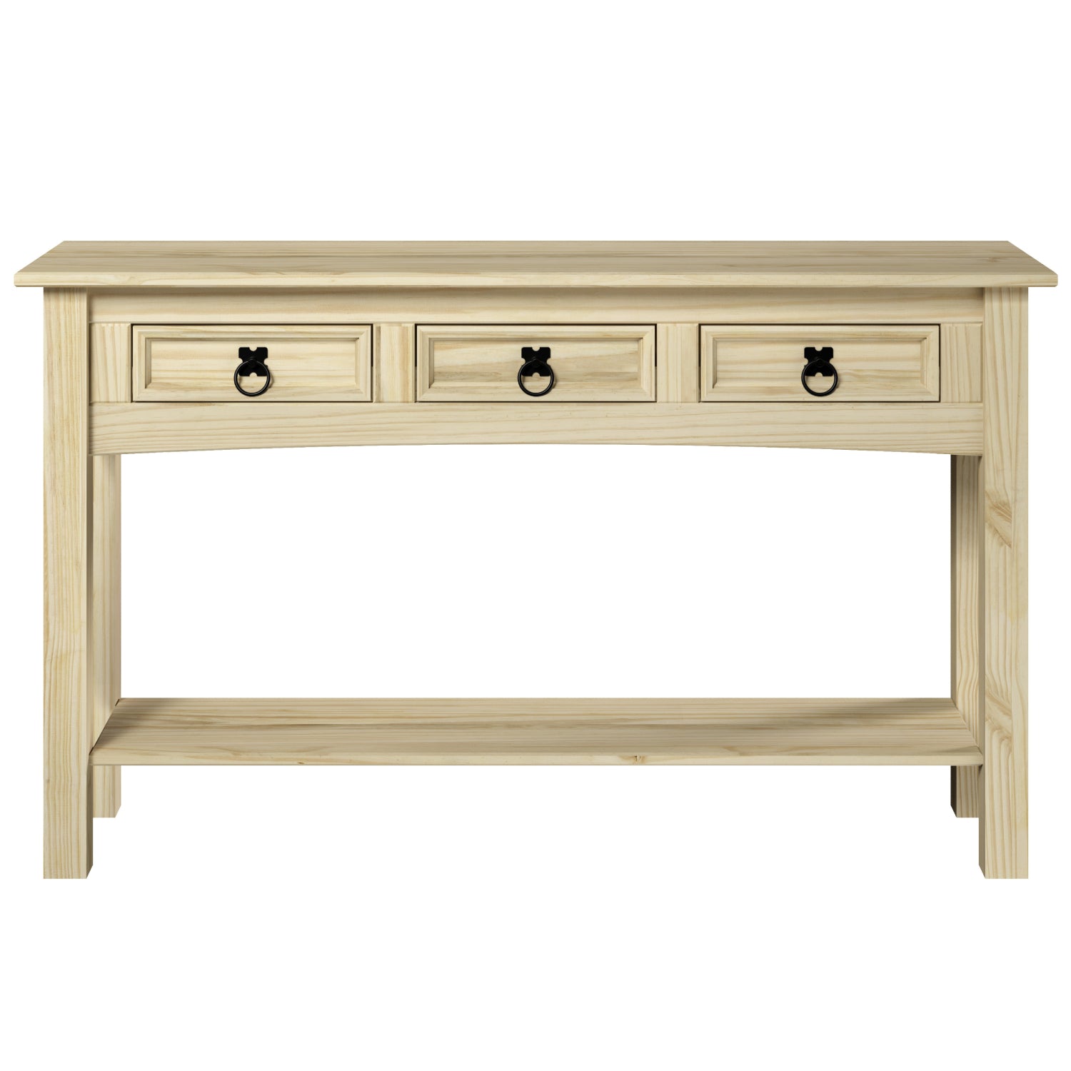 Wood Hall Table Console 3 Drawers Barewood | Furniture Dash