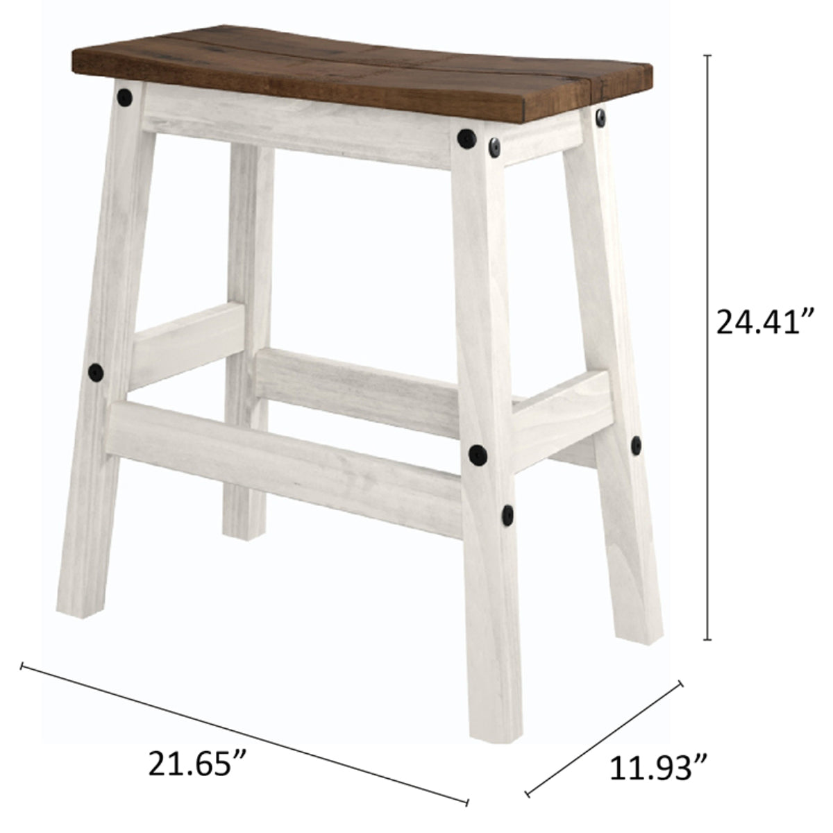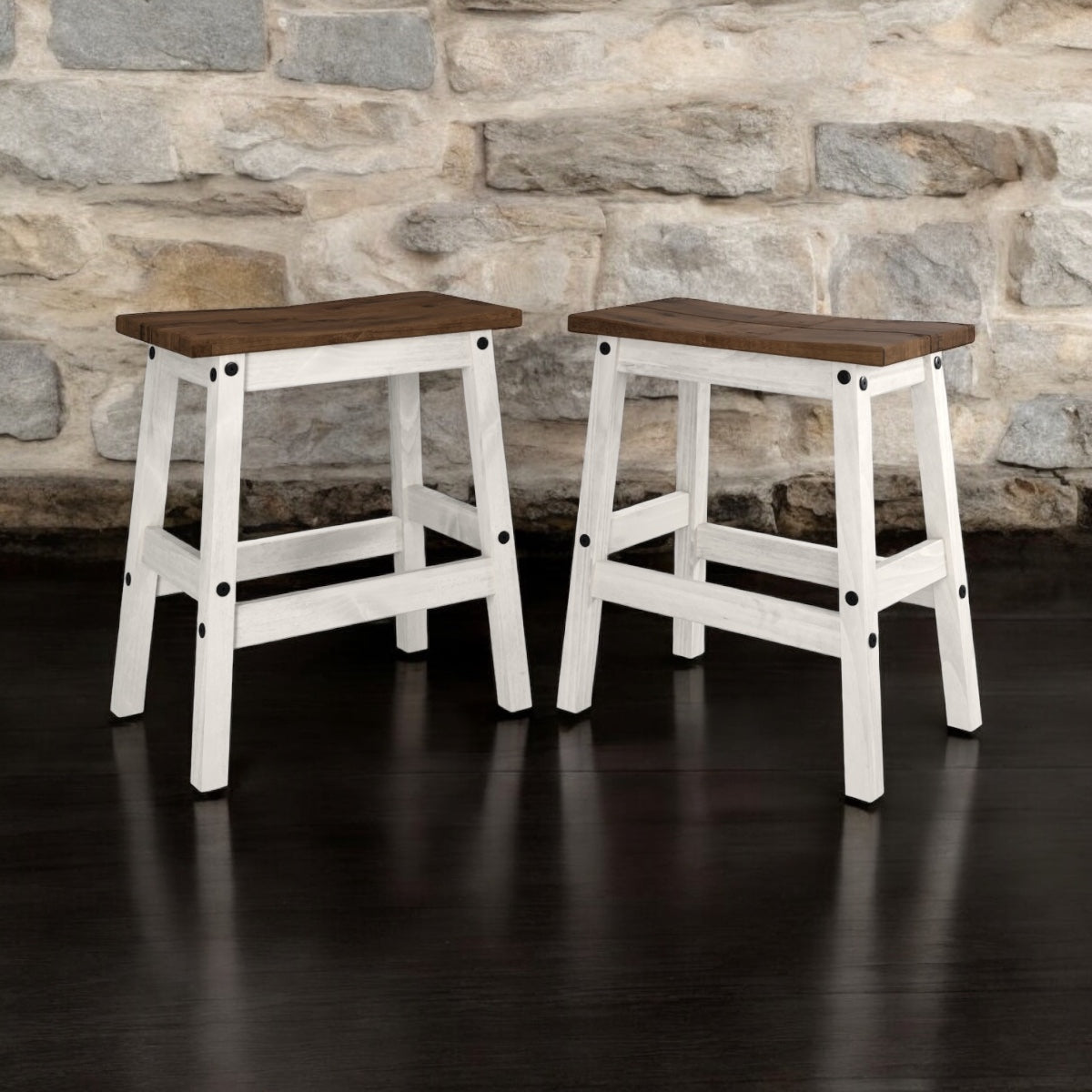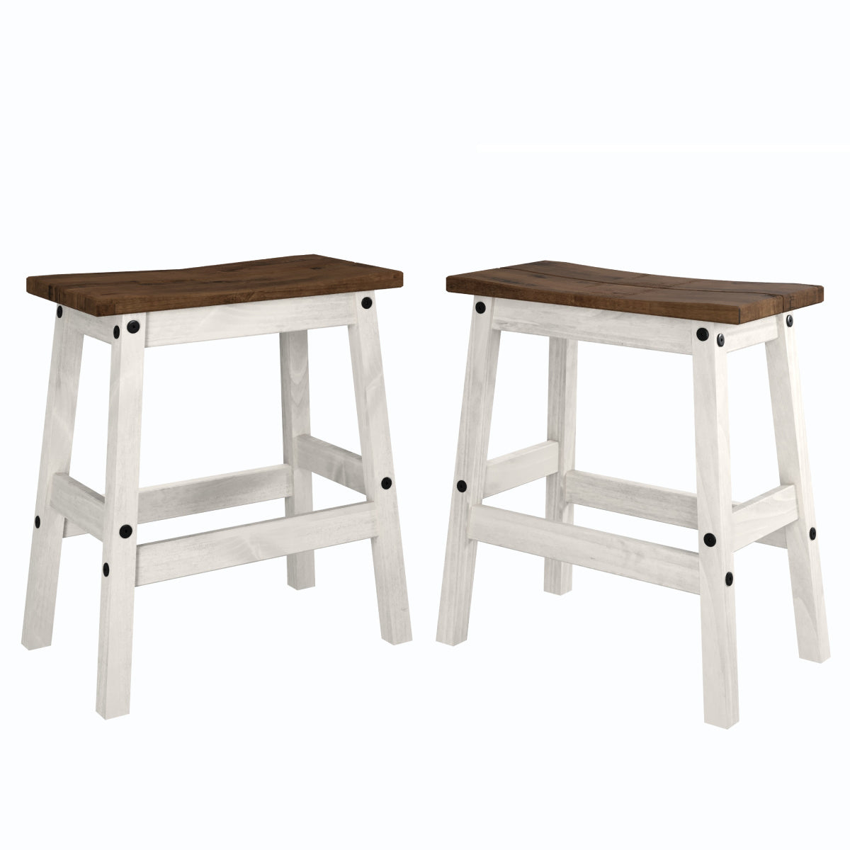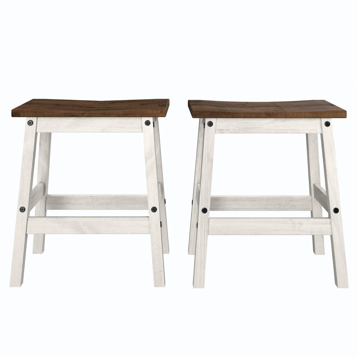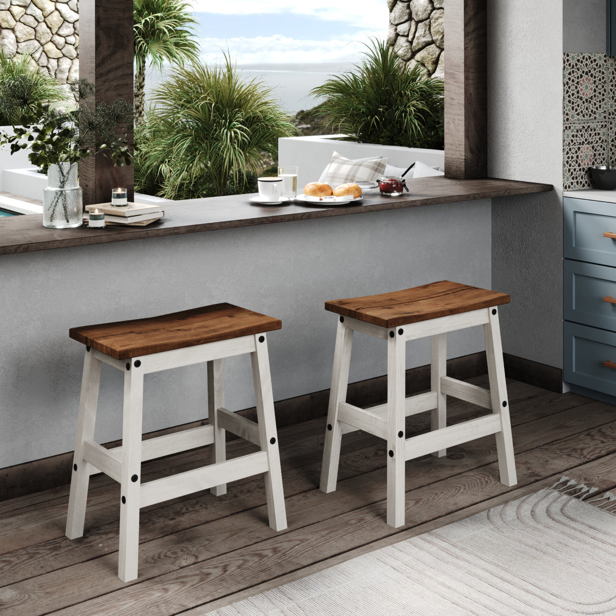 Wood Set of 2 Kitchen Stools Harvest White Distressed | Furniture Dash