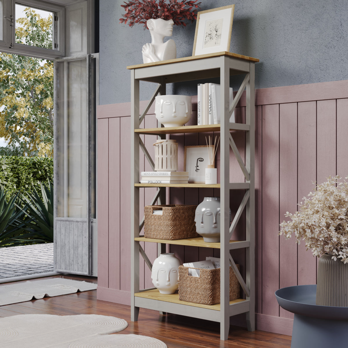 Wood Shelf Unit 5 Tier Corona Gray | Furniture Dash