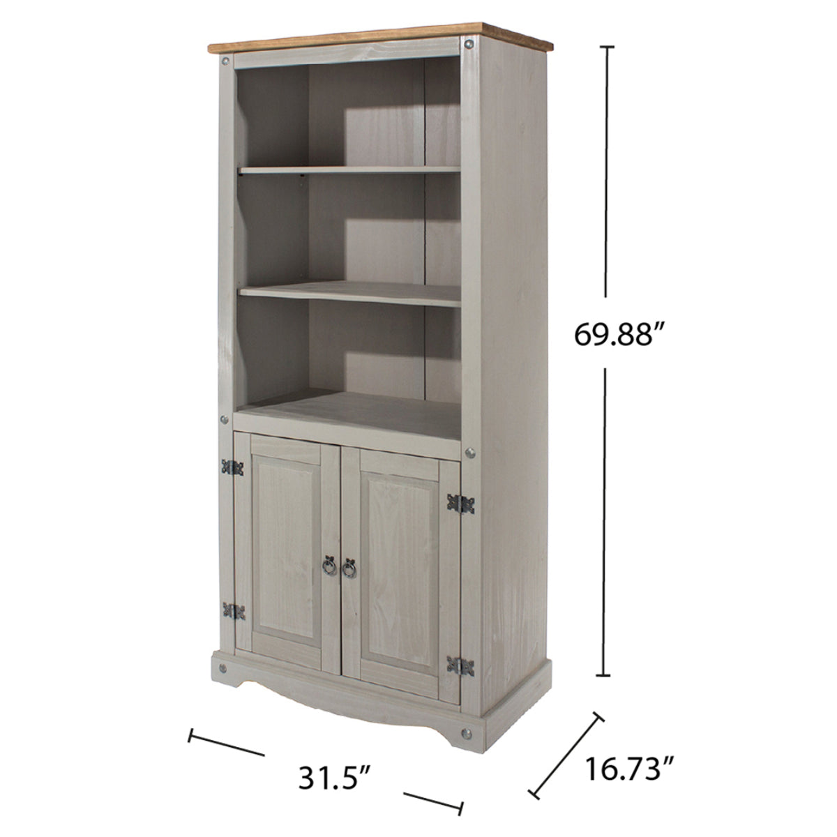 Wood Bookcase Library With Doors Corona Gray | Furniture Dash
